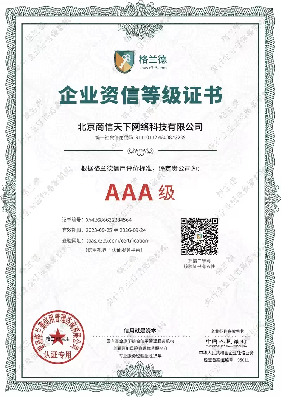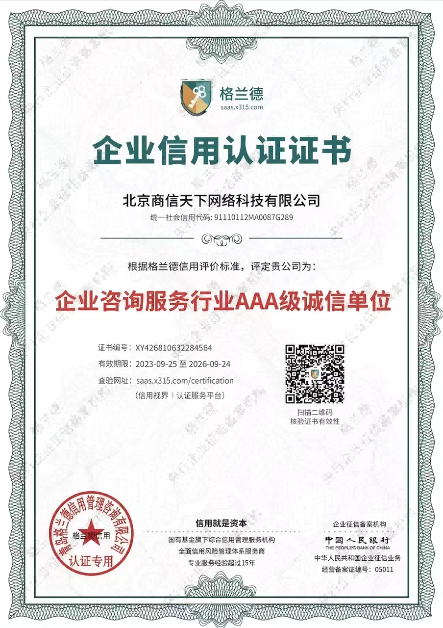 北京商信天下网络科技有限公司于2015年4月成立,总部位于北京市通州区人力资源产业园。分别在河北廊坊、河北保定等地开设分公司。公司致力于企业服务、全国企业重点群体退税、北京企业岗社补贴服务等项目。